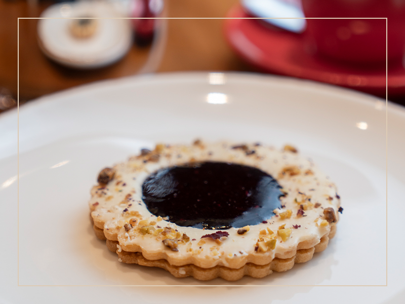 Frambuesa, pistacho y pétalos de rosas